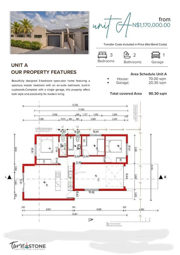 * Unit A: N$1 170 000: 3 Bedr, 2 Batrh, 1 Garage, TOTAL SIZE 90.30m2