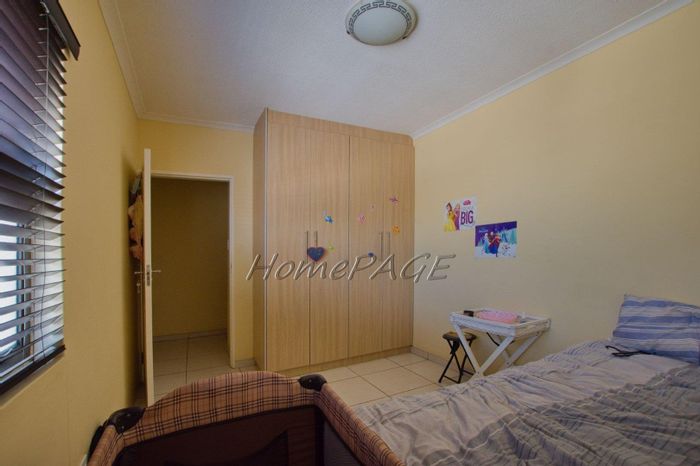 Double storey unit with 3 bedrooms, 2 bathrooms, and 2 garages; total size 182 m². Price: N$1,680,000 negotiable.