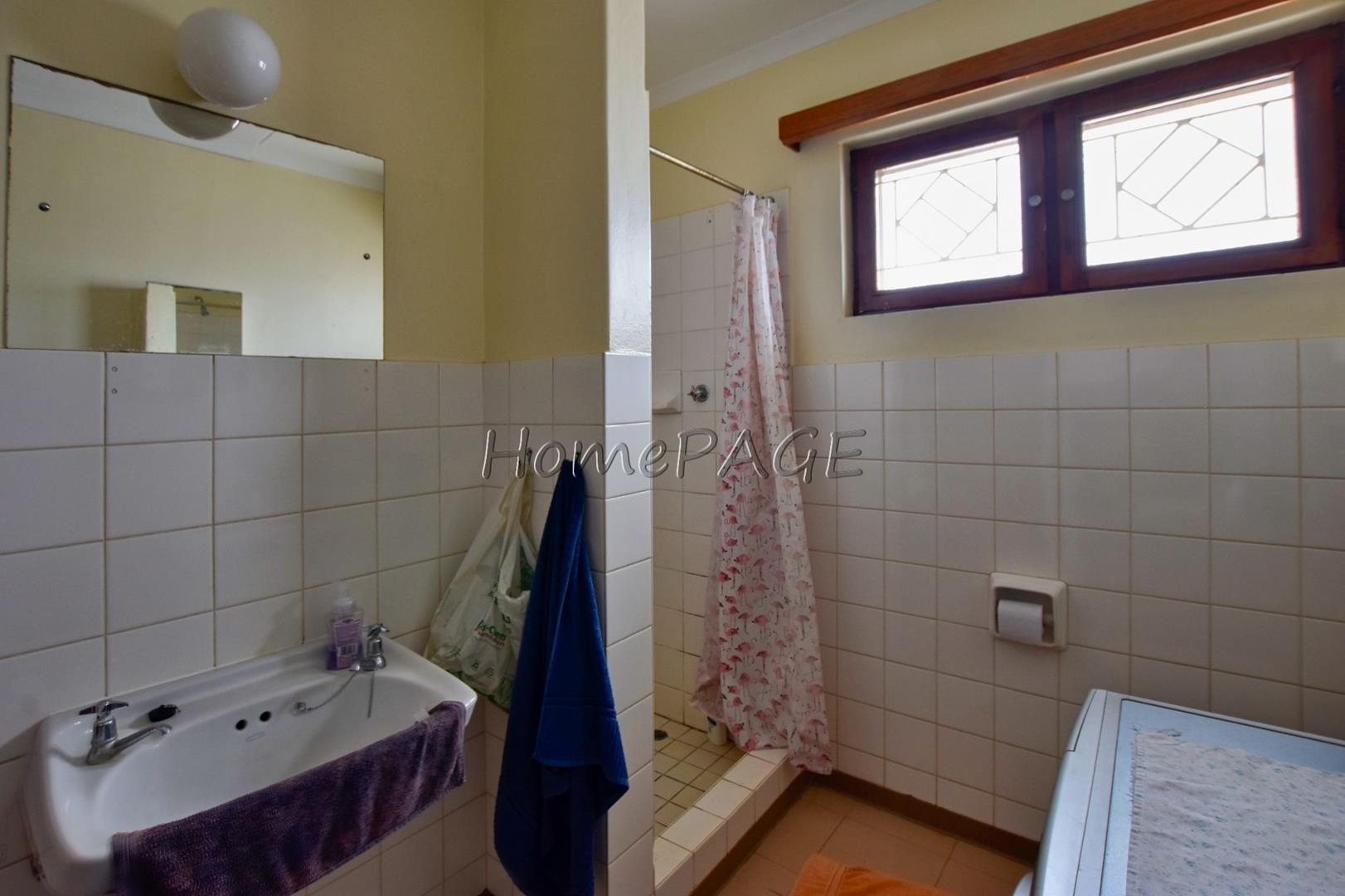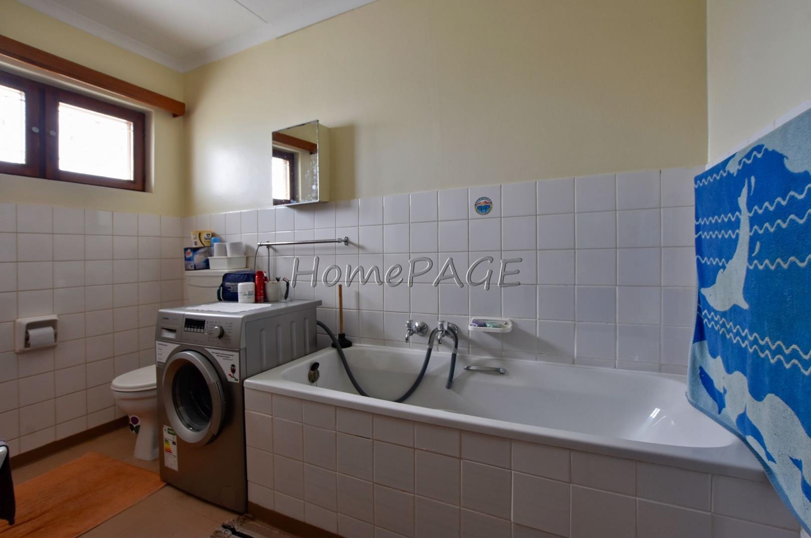 * Bathroom with bath, shower, basin, toilet, and laundry point