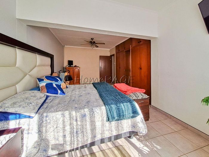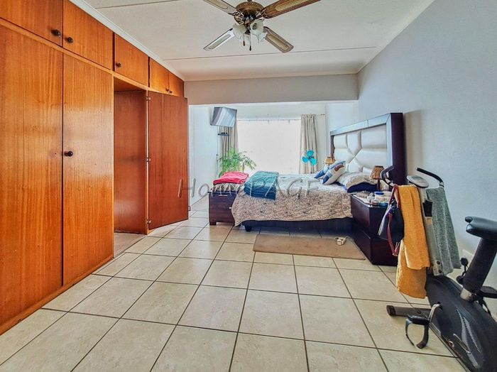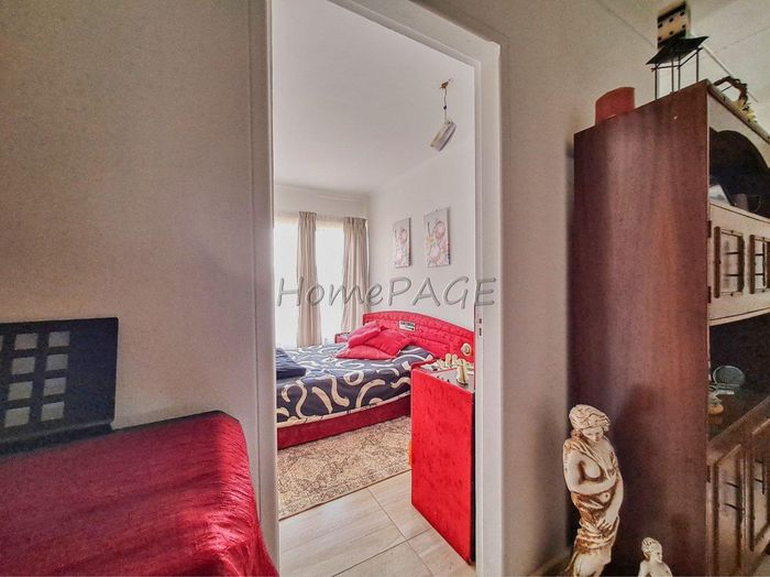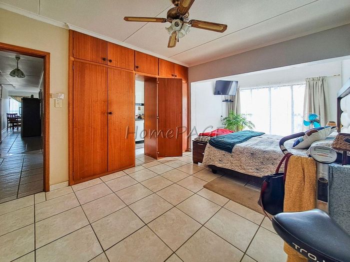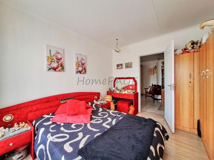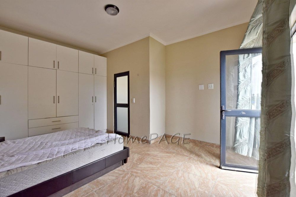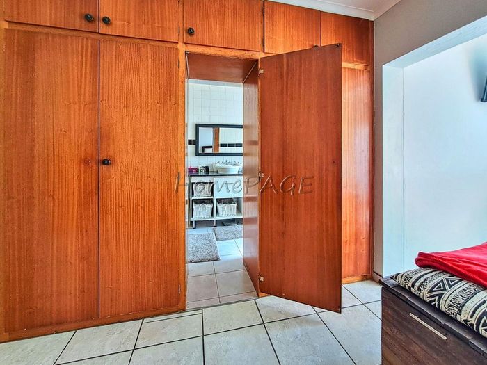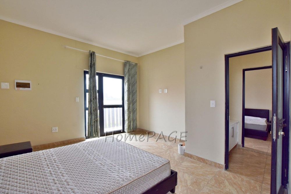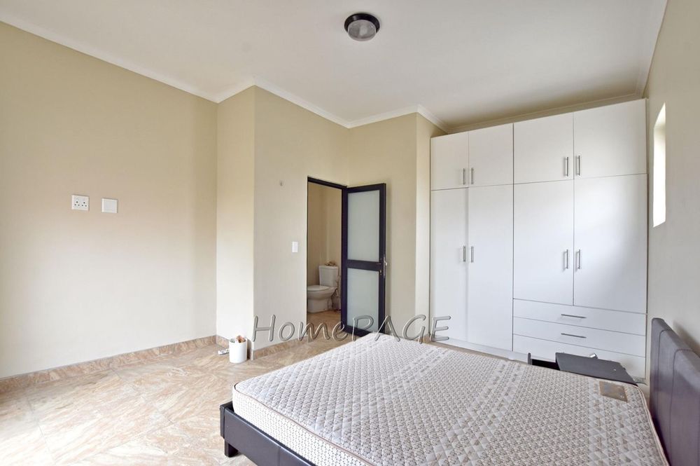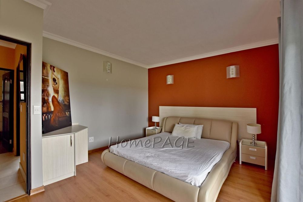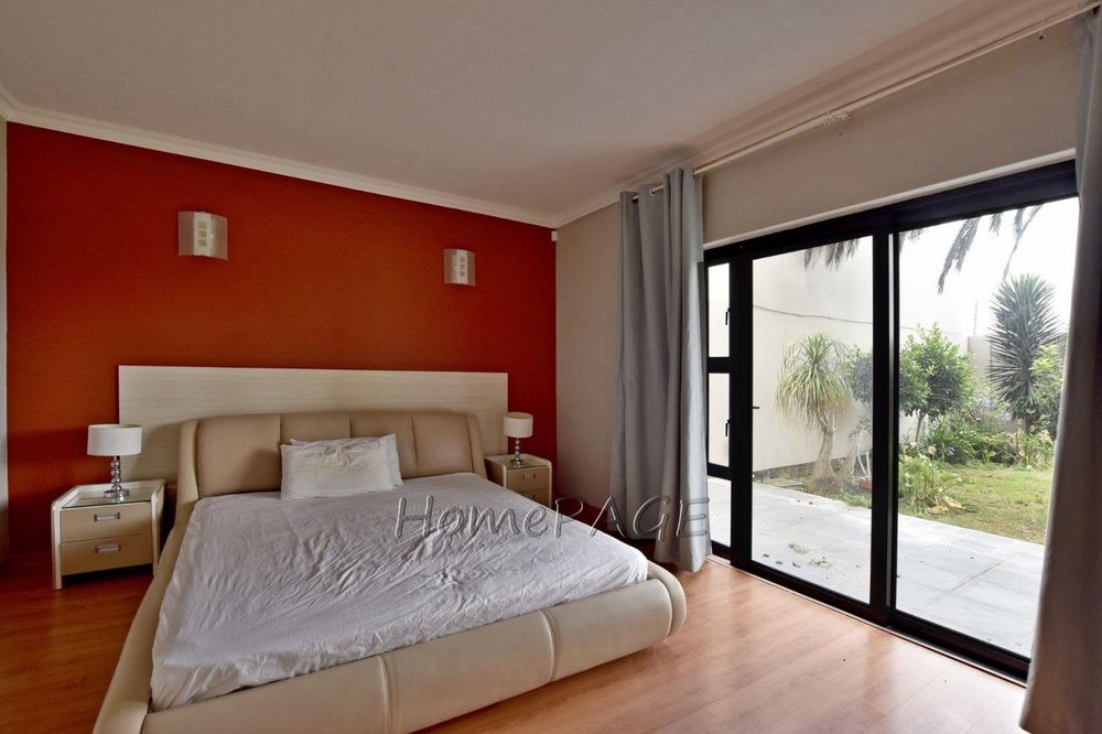 * Bedroom, with beautiful built-in headboard and side tables, in the same wood finish as the attractive built-in cupboards